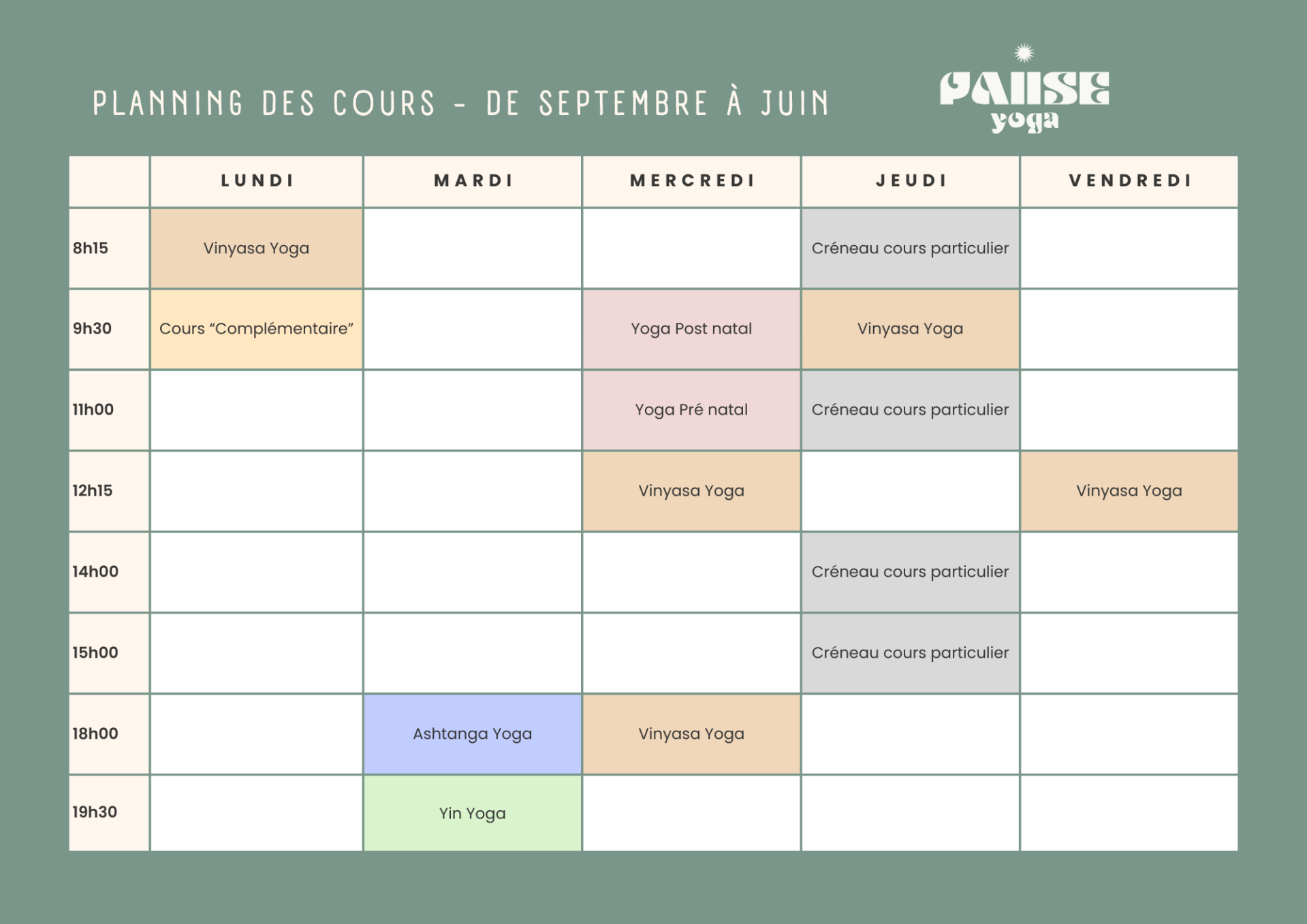 PLANNING DES COURS